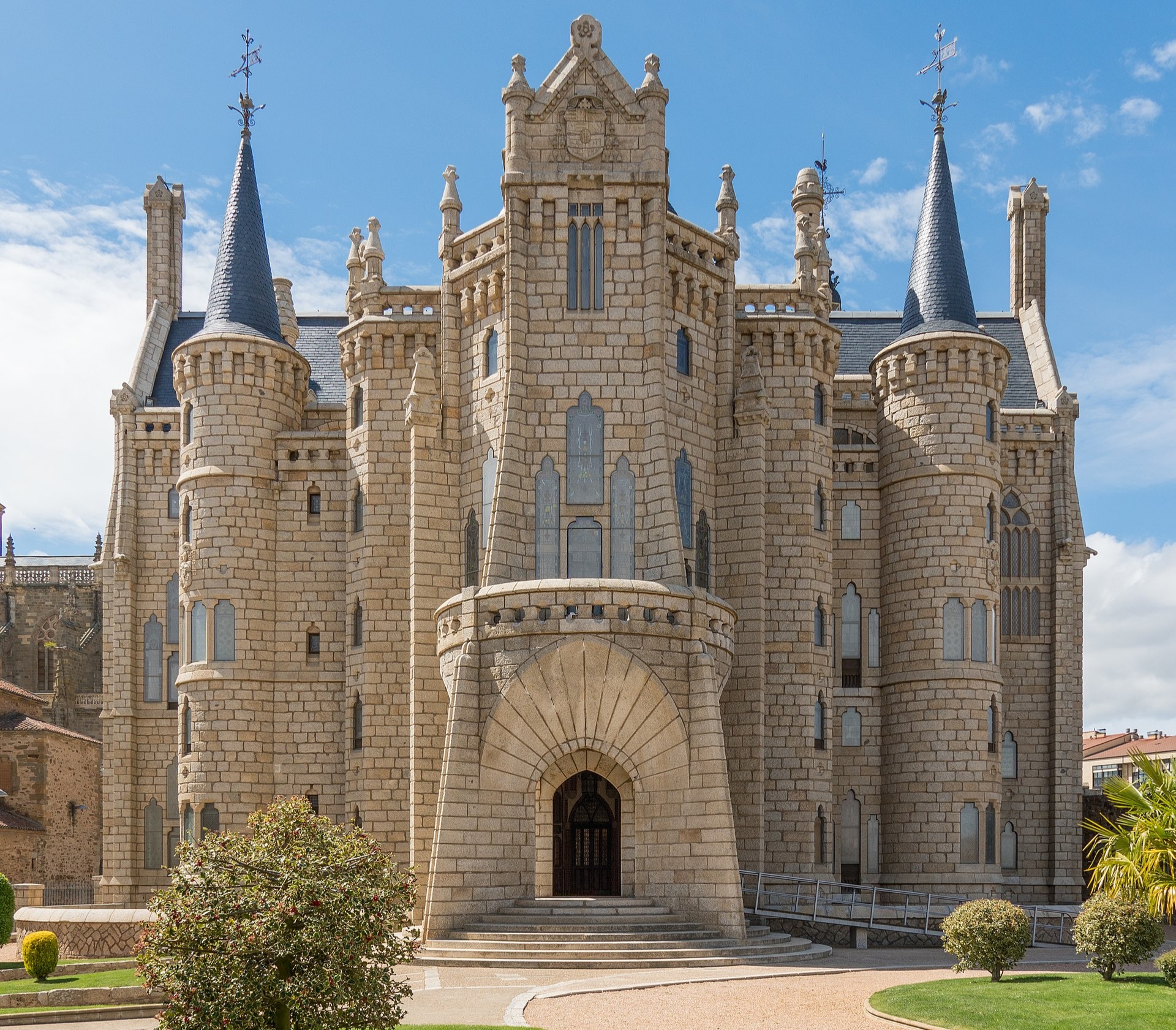 El Palacio de Gaudí, oficialmente Palacio Episcopal de Astorga, es una de las obras más singulares de Antoni Gaudí fuera de Cataluña. Concebido como residencia para el obispo de Astorga tras el incendio del antiguo palacio en 1886, el edificio combina estética neogótica, inspiración medieval y soluciones estructurales innovadoras propias del arquitecto. Hoy alberga el Museo de los Caminos, integrando arte, historia y espiritualidad en pleno Camino de Santiago.